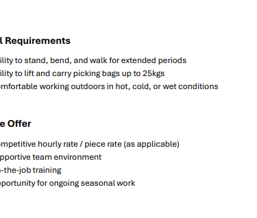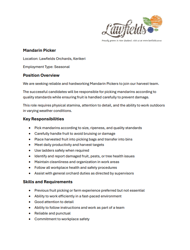 Here at Lawfields, we like to offer short-term career roles for locals, backpackers and travellers passing through!